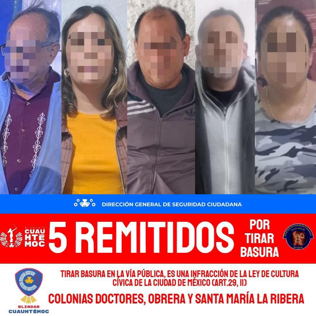 En paralelo, elementos de la Policía Auxiliar han detenido a 246 personas en el último año por tirar basura en la vía pública, una conducta sancionada por el artículo 29 de la Ley de Cultura Cívica.