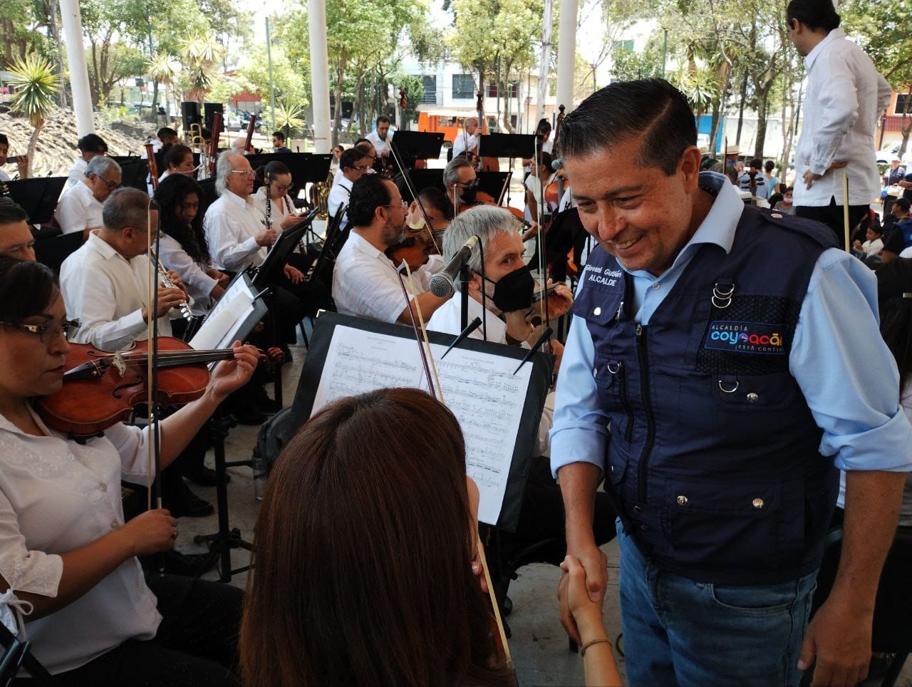 Durante el concierto de la Orquesta Sinfónica, Giovani Gutiérrez externó que, desde hace 18 meses, las y los coyoacanenses pueden disfrutar de eventos artísticos y culturales cerca de sus hogares, pues uno de los objetivos ha sido descentralizar las actividades de este tipo y llevarlas a todos los rincones de la demarcación.