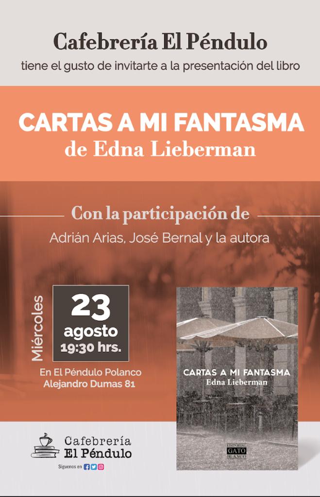 Ciudad de México, 22 de agosto.- Edna Lieberman de nuevo intenta exorcizar sus amorosos demonios. Publicado en 2016, relanza su libro Cartas a Mi Fantasma. Historia de su tórrido romance con Roberto Bolaño, escritor chileno, ícono de la literatura latinoamericana.