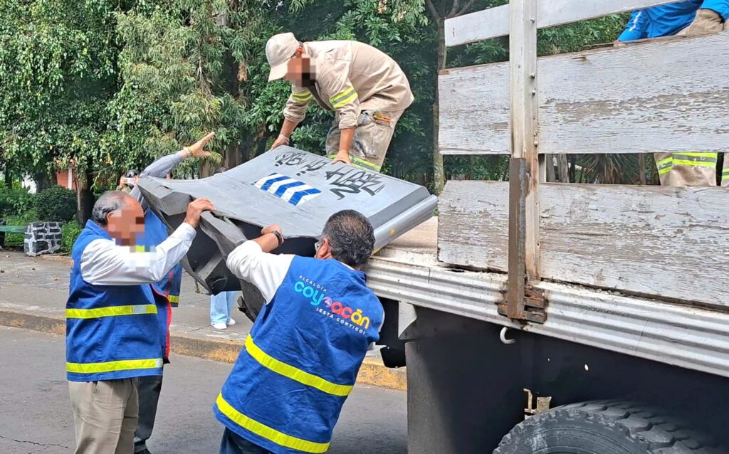 La alcaldía Coyoacán llevó a cabo dos dispositivos de recuperación del espacio público con personal de las direcciones generales de Asuntos Jurídicos y Gobierno; de Obras y de Servicios Urbanos quienes apoyan con personal, maquinaria y unidades para levantar de la calle todo tipo de objetos que van desde piedras de gran tamaño, hasta estructuras metálicas, bloques de concreto, macetones o tambos.