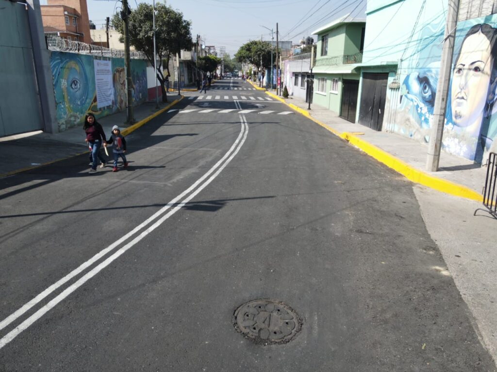 Esta rehabilitación integral se realizó en cerca de 400 metros lineales de la calle Insurgentes, entre las vialidades El Vergel y Manuel Altamirano, colonia Las Peñas, y consistió en el reencarpetado asfáltico de 3 mil 168 metros cuadrados y rehabilitación de ductos de agua potable, 2 coladeras pluviales, guarniciones, banquetas y alumbrado público.