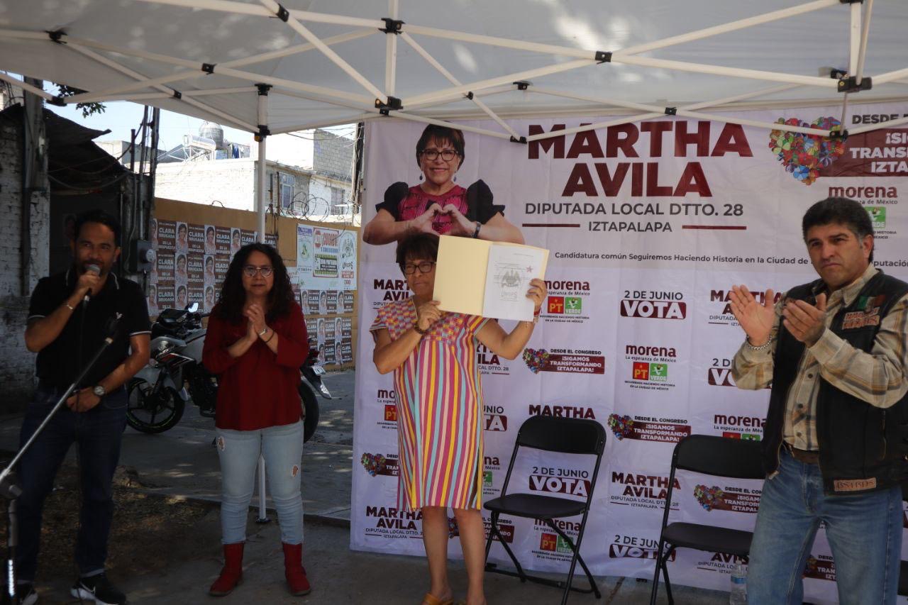 Martha Avila, la abanderada de la candidatura común Seguiremos Haciendo Historia en la Ciudad de México (Morena, PT y Partido Verde) en el Distrito 28,  realizó ayer una asamblea y recorrido en la colonia Casablanca, con vecinas, vecinos, líderes de la zona y representantes de la UNOPS, con quienes firmó una compromiso para integrar un ejército de defensa y promoción del voto para continuar la Transformación en Iztapalapa, la CDMX y todo el país.